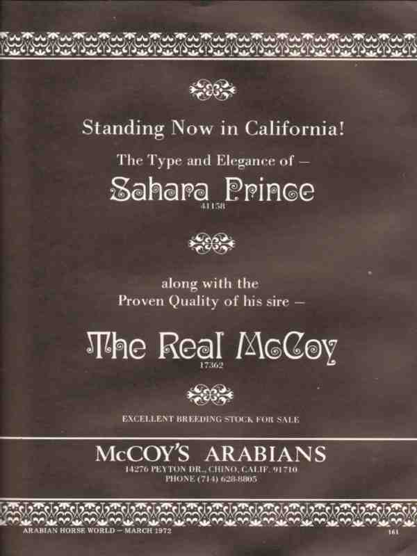 mccoys arabians 1972 sahara prince the real mccoy horse vintage ad
