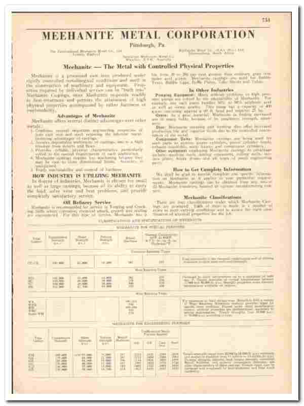 Original 1942 metal trade vintage catalog for the MEEHANITE METAL CORPORATION. Main office and plant were located in Pittsburgh, PA.