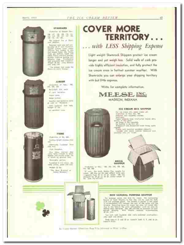 Meese Inc 1934 vintage ice cream ad Shamrock Shipper cover territory