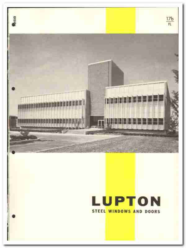 Manufacturers of Lupton Steel Windows and Doors. Products include Architectural Projected Windows for school, hospital and office buildings, Windows for Glass Block Walls, Commercial Projected Windows for commercial and industrial buildings, Pivoted Windows for industrial buildings, Security Windows for protection in stores, warehouses, etc. Mechanical Operators for pivoted and projected windows are featured. Has numerous product images with detailed descriptions, illustrations, uses, applications, specifications and dimensions provided. Unbound from a large 1958 architectural product catalog, this unique old eighteen-page brochure would display beautifully matted and framed. Nice cover graphics. A fantastic addition to your vintage construction materials library. Pages may be loose and contain residual glue on edge. (SAS-580).