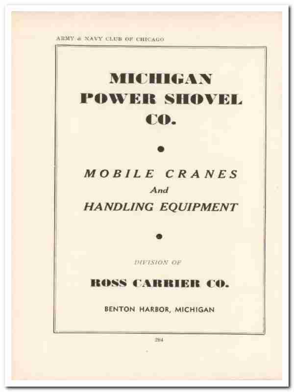 Original WW2 wartime tractor vintage ad for MICHIGAN POWER SHOVEL COMPANY. Mobile Cranes and Handling Equipment. Division of Ross Carrier Company.