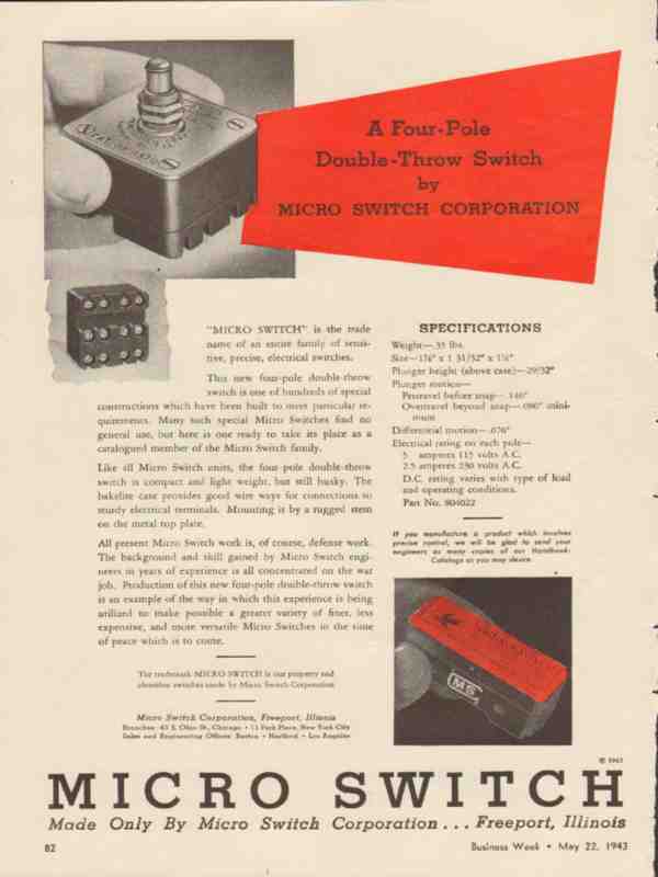 micro switch corp 1943 four pole double throw switch vintage ad
