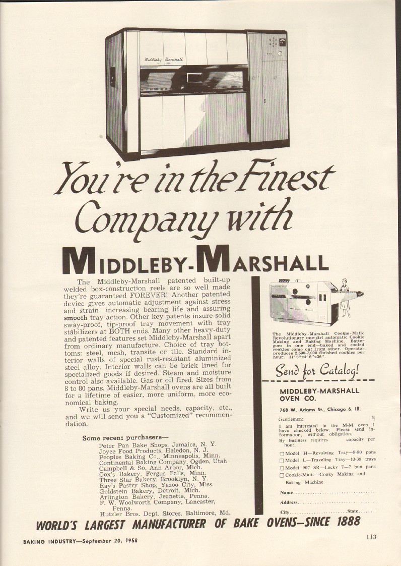 middleby-marshall oven company 1958 revolving baking vintage ad
