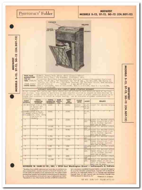 midwest model s-12 st-12 sg12 5-band radio phono sams photofact manual