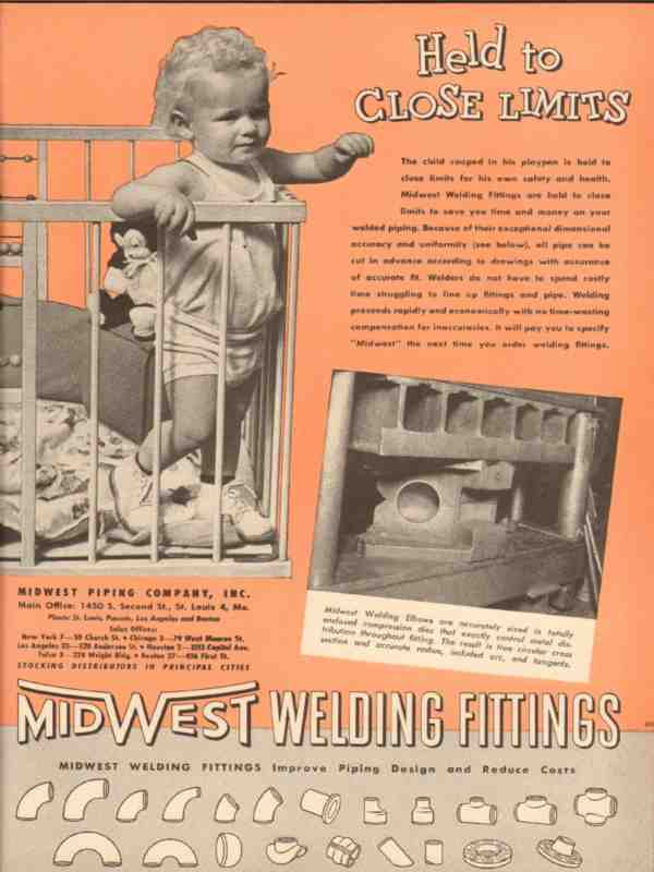 Midwest Piping Company 1954 Vintage Ad Welding Fittings Close Limits