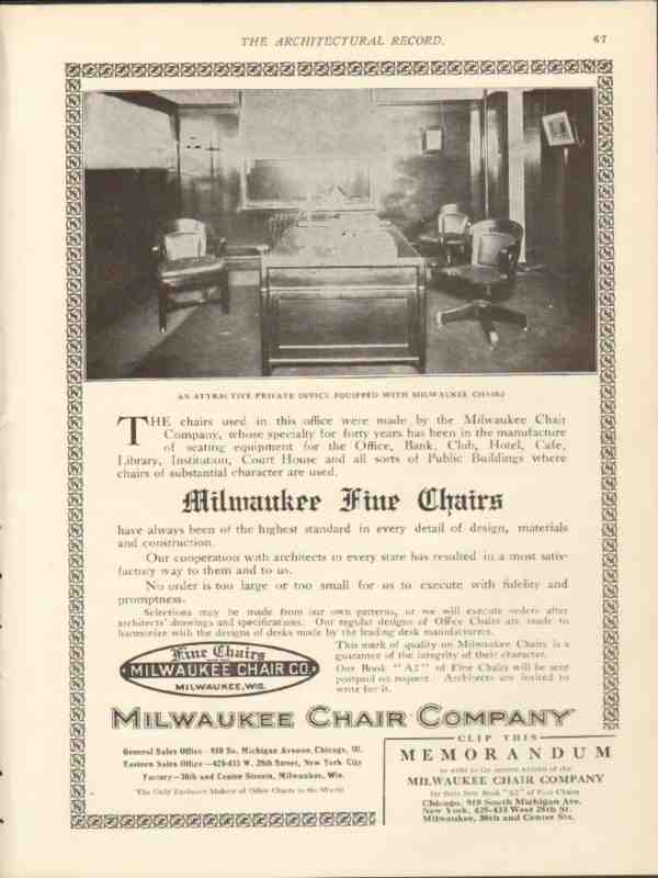 milwaukee chair company 1912 office bank club hotel cafe vintage ad