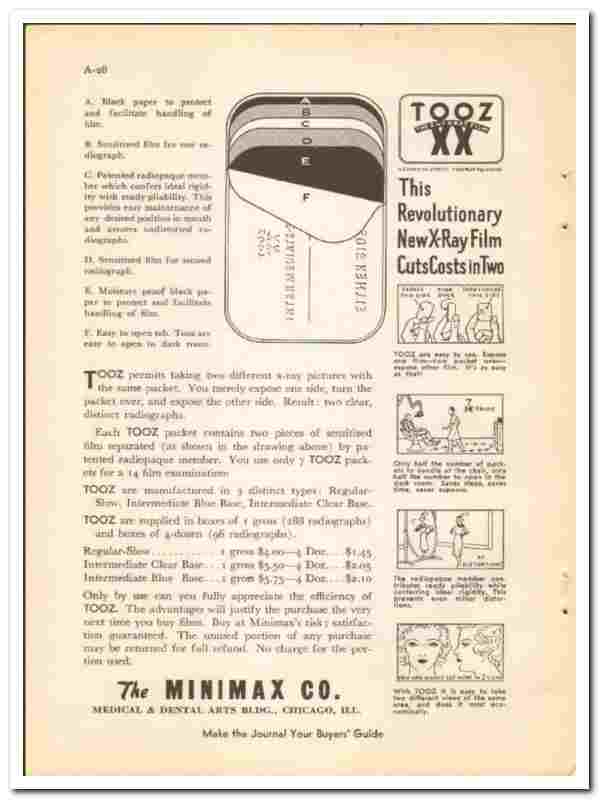 Minimax Company 1938 vintage dental ad x-ray film TOOZ economy