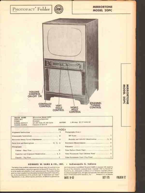 mirrortone model 20pc tv television receiver sams photofact manual