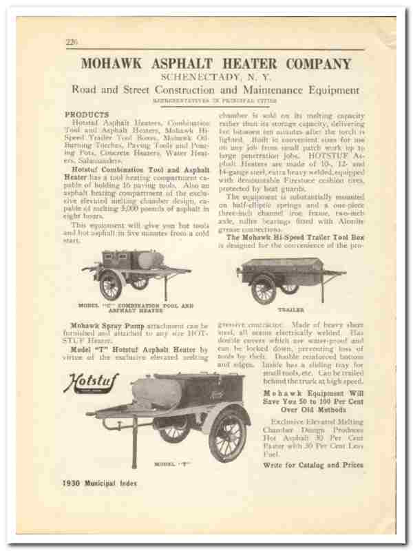 Mohawk Asphalt Heater Company 1930 vintage road catalog Hotstuf