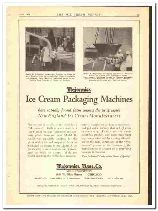 Mojonnier Bros Company 1924 vintage ice cream ad packaging machines