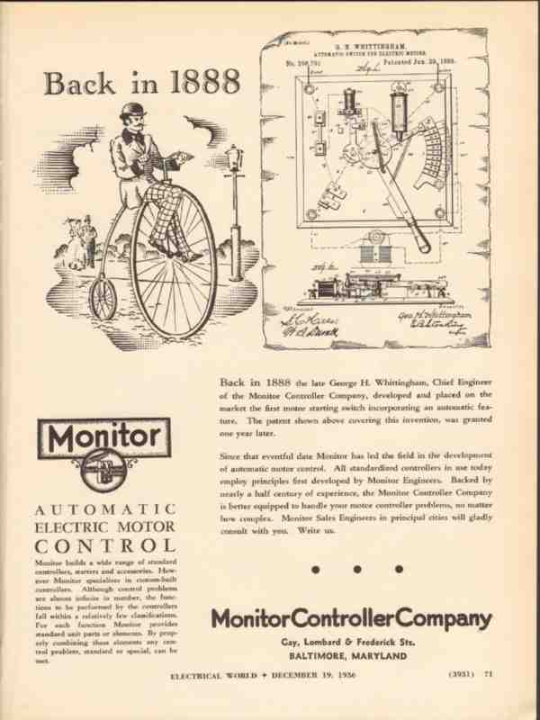 monitor controller company 1936 george h whittingham switch vintage ad