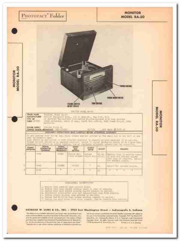 monitor model ra-50 5-tube am radio phonograph sams photofact manual