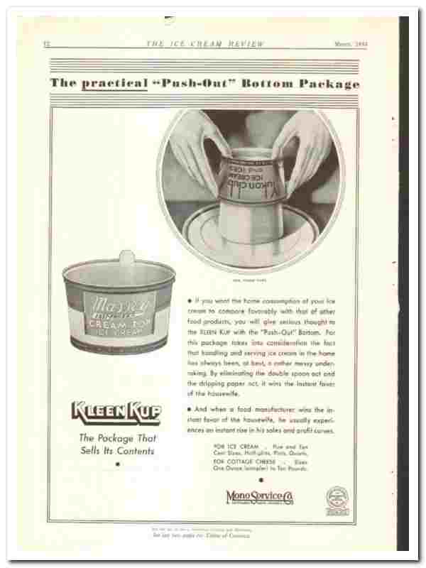 Mono Service Company 1928 vintage ice cream ad Kleen Kup package sells
