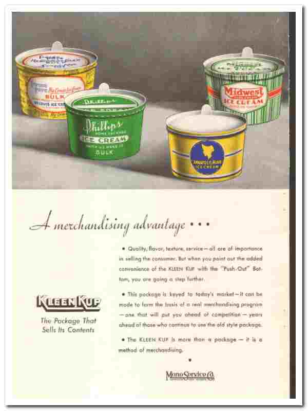 Manufacturers of Kleen Kup for Ice Cream. 'A Merchandising Advantage'.