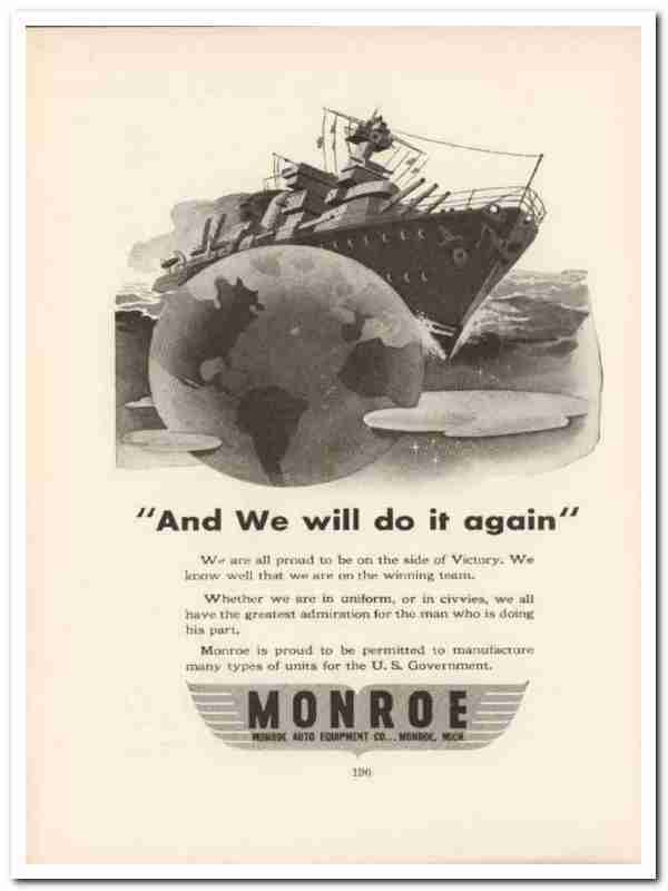 monroe auto equipment company 1943 we victory ww2 wartime vintage ad