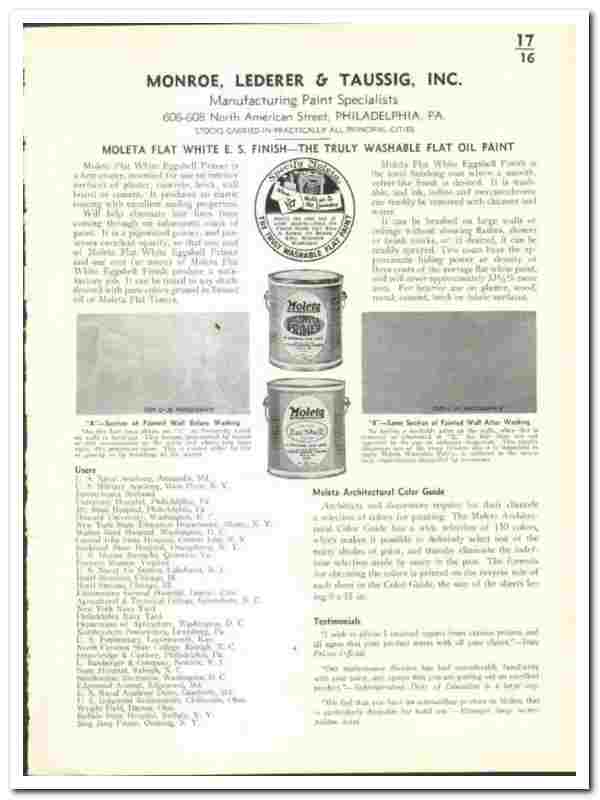 Monroe Lederer Taussig Inc 1942 vintage paint catalog Moleta Flat