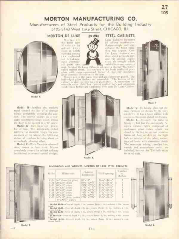 Morton Mfg Company 1938 Vintage Catalog Bathroom Cabinets Deluxe Steel