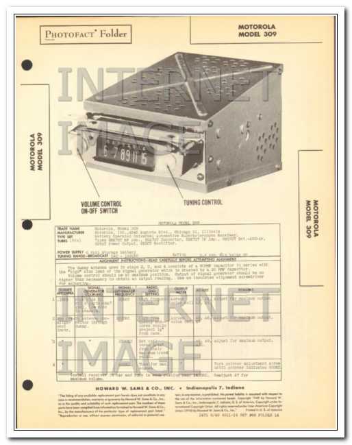 motorola model 309 6 tube am car radio receiver sams photofact manual