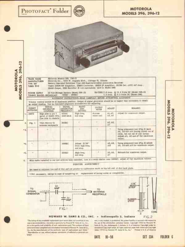 motorola model 396 396-12 am car radio receiver sams photofact manual