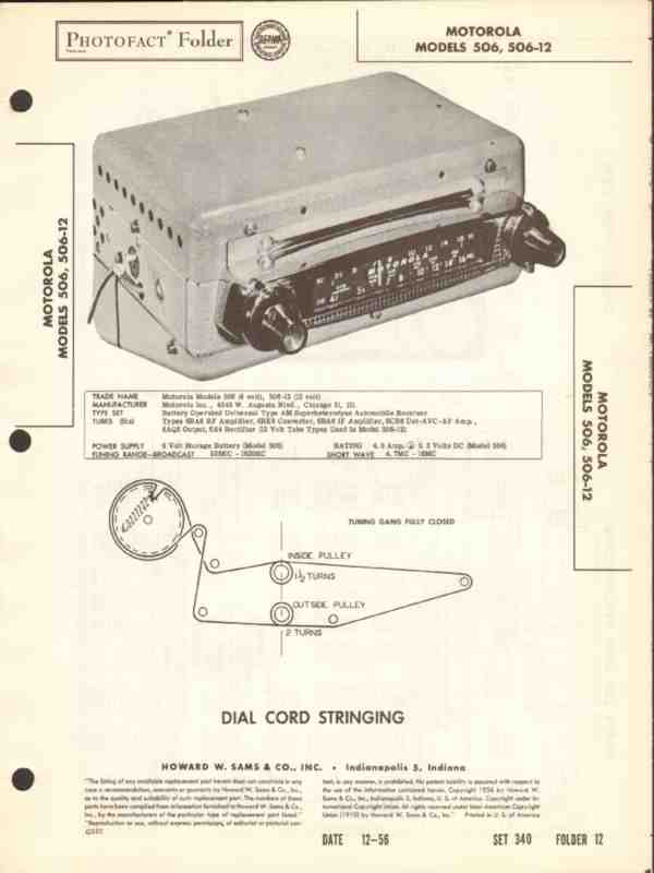 motorola model 506 506-12 am car radio receiver sams photofact manual