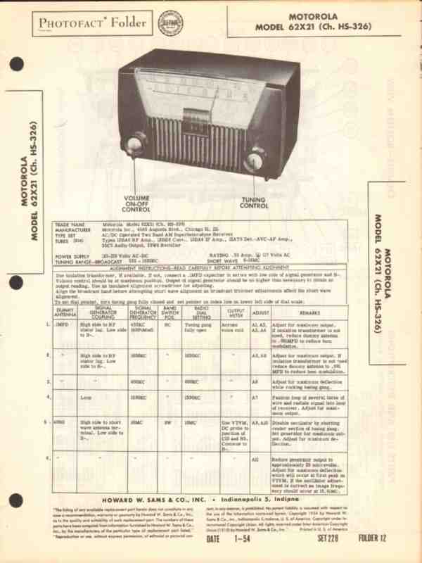 motorola model 62x21 am sw radio receiver sams photofact manual