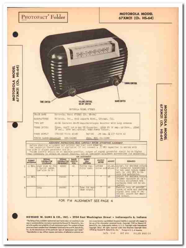 motorola model 67xm21 5-tube am fm radio sams photofact manual