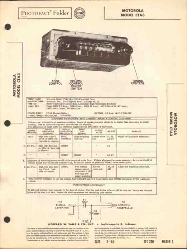 motorola model cta3 6 tube am car radio receiver sams photofact manual