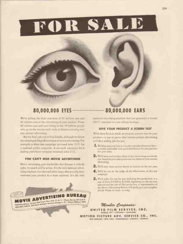movie advertising bureau 1947 for sale eyes ears media vintage ad
