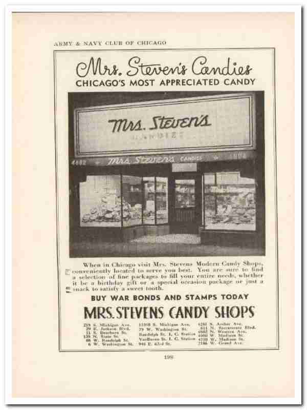 mrs stevens candy shops 1943 chicago war bonds ww2 wartime vintage ad