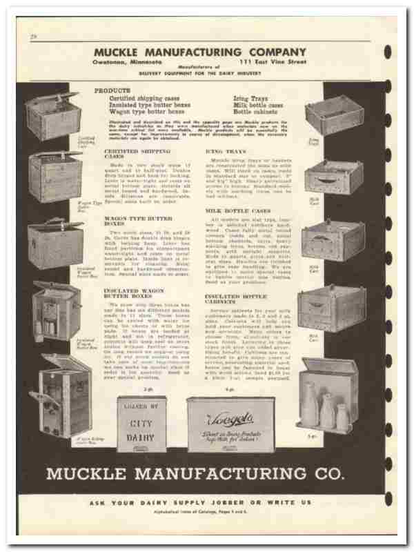 Original 1946 dairy trade vintage catalog for the MUCKLE MANUFACTURING COMPANY. Main office and plant was located at 111 East Vine Street, Owatonna, MN.