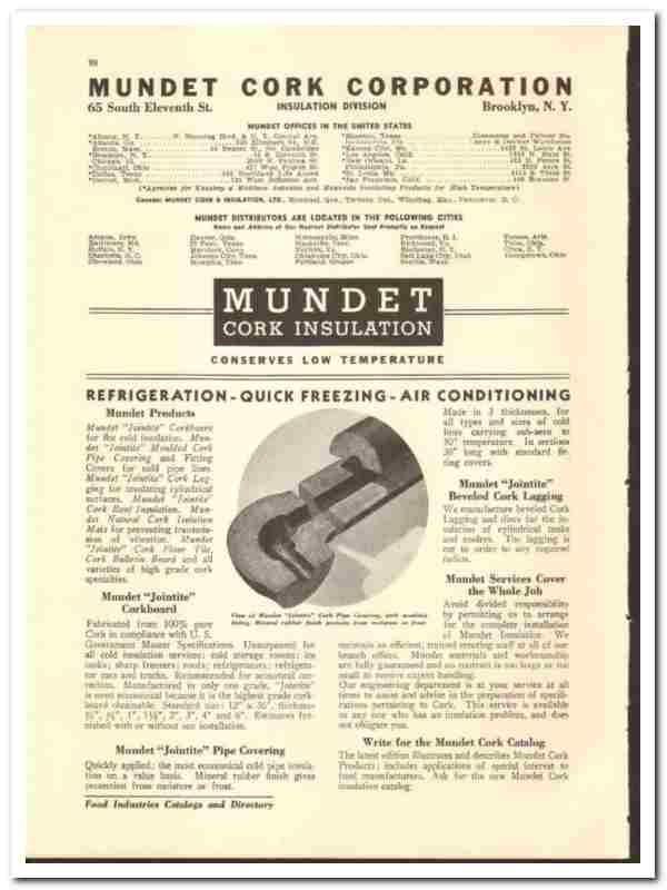 Manufacturers of Mundet Cork Insulation. Refrigeration - Quick Freezing - Air Conditioning.