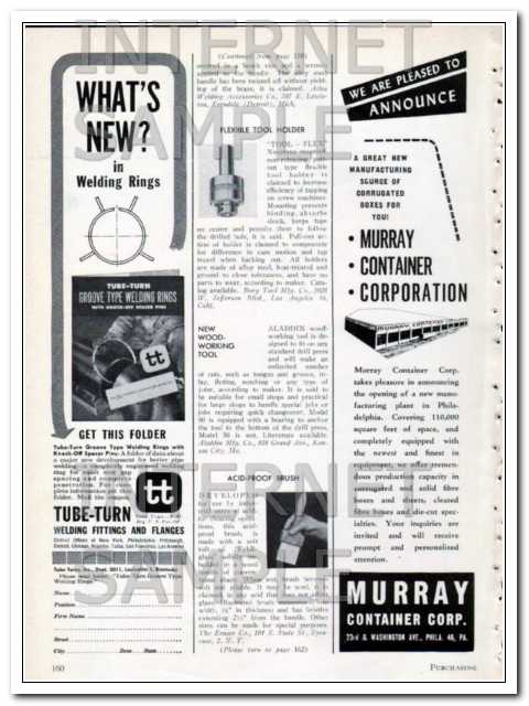 Original vintage industrial magazine ad for MURRAY CONTAINER CORPORATION of Philadelphia, PA. Manufacturer of Corrugated Boxes Opening New Plant. Old 1948 fractional page industry advertisement. Would display magnificently matted and framed!