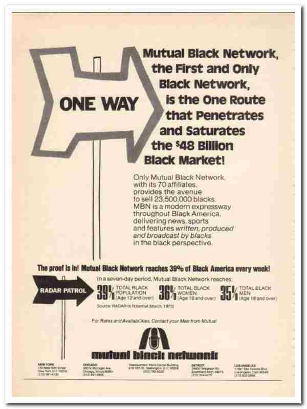 Mutual Black Network 1973 one way penetrate saturate media vintage ad