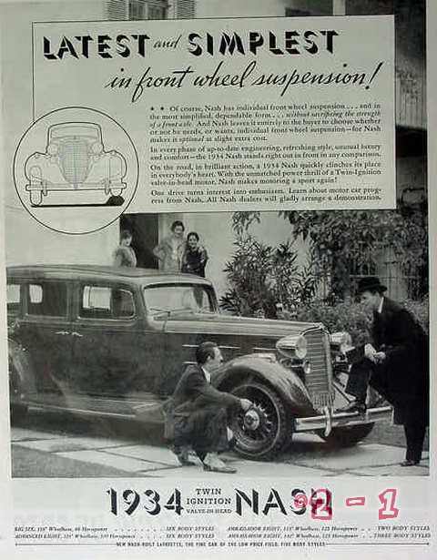 nash 1934 latest simplest front wheel suspension car vintage ad