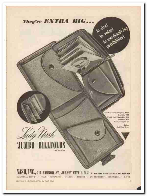 Nash Inc 1946 Vintage Ad Leather Jumbo Billfold Lady Wallet Extra Big