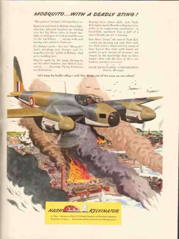 nash-kelvinator corp 1943 mosquito deadly sting airplanes vintage ad