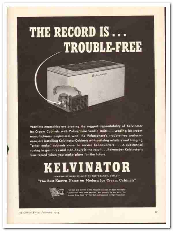 Nash-Kelvinator Corp 1944 vintage ad ice cream trouble-free wartime