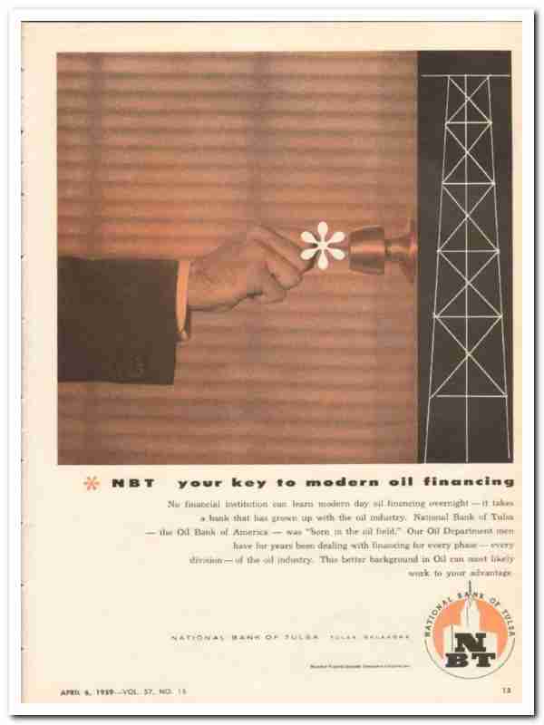 national bank of tulsa 1959 special banker oil financing vintage ad