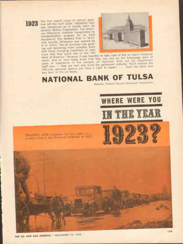 national bank of tulsa 1962 traffic jam oilfields year 1923 vintage ad