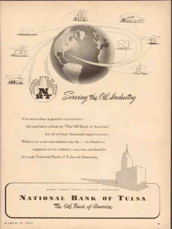 national bank of tulsa 1954 serving oil industry financial vintage ad