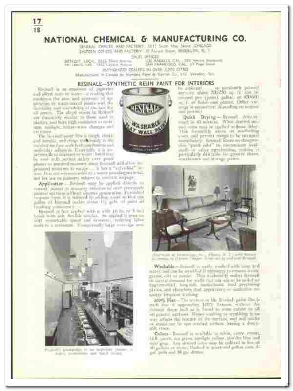 Original 1942 paint trade vintage catalog for the NATIONAL CHEMICAL & MANUFACTURING COMPANY. Main office and plant were located at 3617 South May Street, Chicago, IL. and also at 25 Forrest Street, Brooklyn, NY.