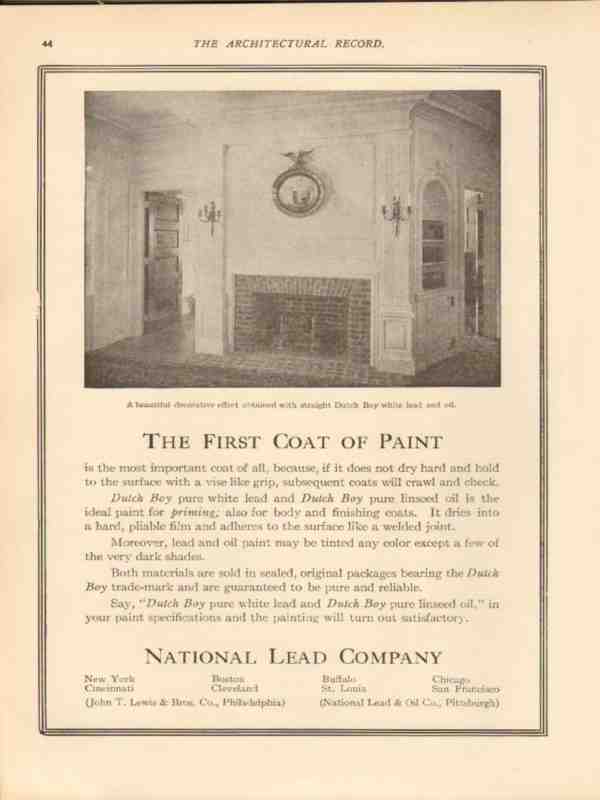 Original vintage architectural trade magazine ad for NATIONAL LEAD COMPANY. The First Coat of Paint is the Most Important Coat of All. Dutch Boy White Lead and Oil Paint. Old 1913 building construction industry advertisement.