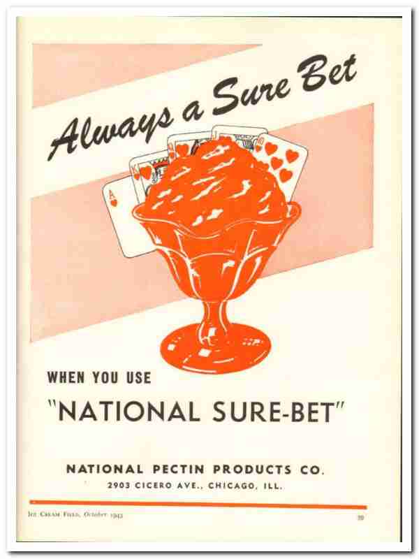 National Pectin Products Company 1947 vintage ice cream ad Sure-Bet