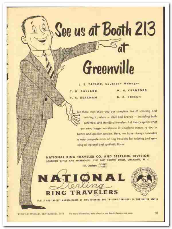 National Ring Travelers Company 1954 vintage textile ad Taylor Ballard