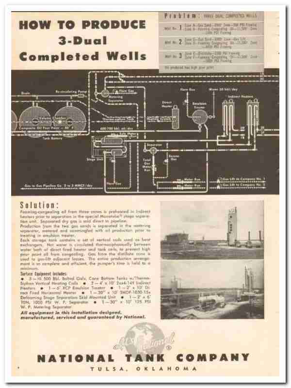 National Tank Company 1959 Vintage Ad Oil Field 3-Dual Completed Wells