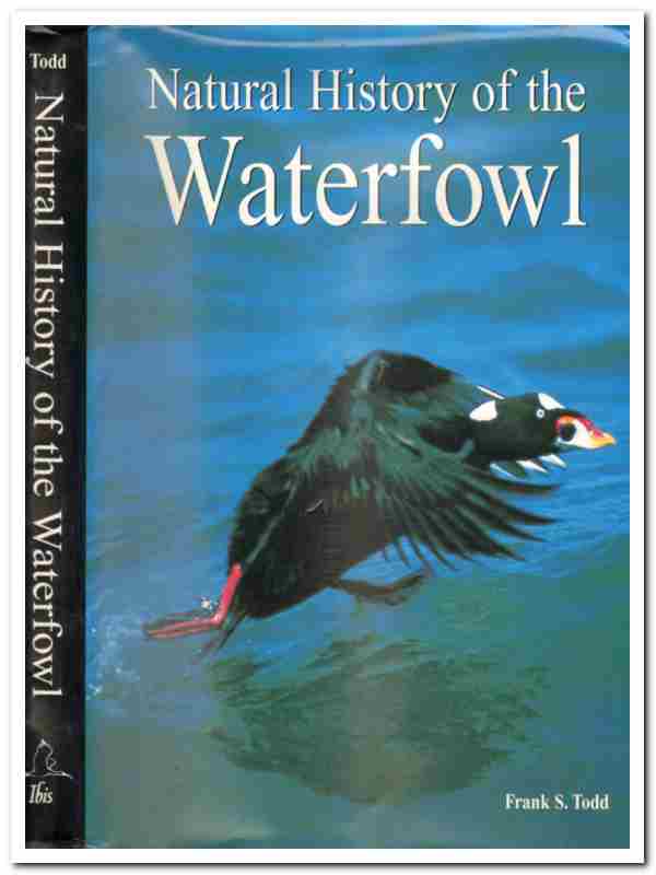 Hard covered book titled NATURAL HISTORY OF WATERFOWL, by Frank S. Todd, 1996, 490 pages, high quality glossy paper, dust jacket, navy blue cloth bound with gold lettering. A very heavy book. Signed by the author.