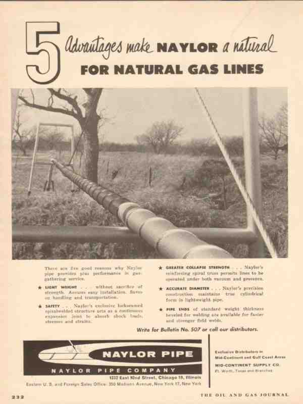 Naylor Pipe Company 1955 Vintage Ad Pipeline Natural Gas Lines Safety