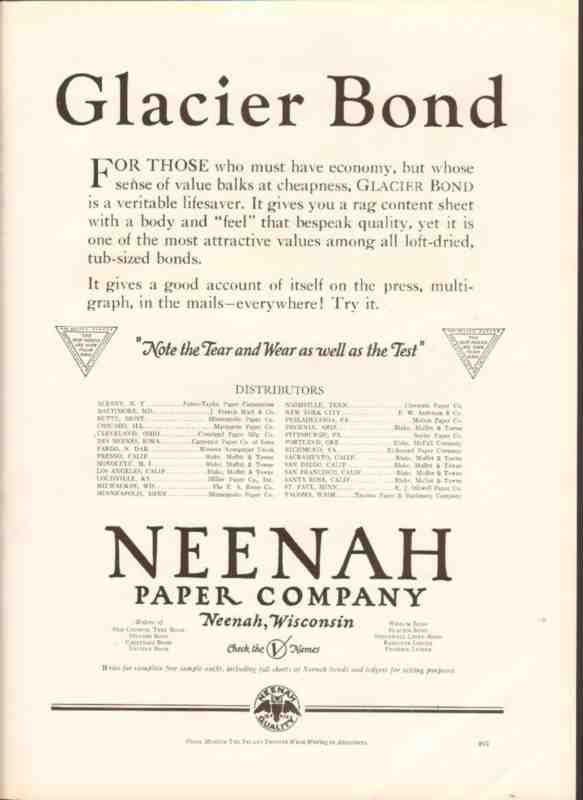 neenah paper company 1926 glacier bond printing supply vintage ad