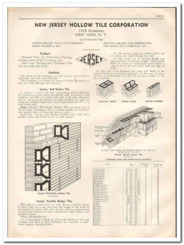 New Jersey Hollow Tile Corp 1933 Vintage Catalog Partitions Furring