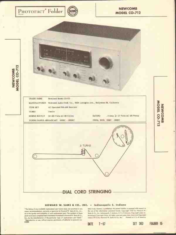 Vintage NEWCOMB AUDIO model CO-712 AM FM radio receiver . Original old Sams Photofact manual with schematics, layouts, alignment, adjustments, and parts list. 8 pages. Dated 1957. Newcomb Audio Products Company of Hollywood, CA. This would make a sensational accompaniment to your vintage audio equipment.